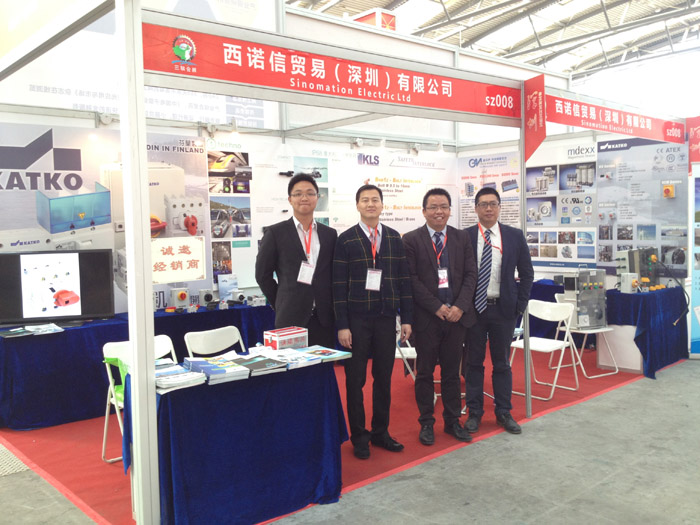 我司再次齐聚五大品牌,呈现最全面的自动化全套配件及解决方案,向来自世界各地的业内人士展示最热门的【芬兰KATKO凯科安全隔离开关】、【意大利Techno得洛防水连接器】、【法国KLS安全防护锁】、【意大利GMI防爆安全栅】、【天津Medxx电抗器与变压器】等最新机电全套配件及最热门新颖的【DC光伏汇流箱】解决方案吸引着参观者的眼球,特别值得指出的是【DC光伏汇流箱】,通过KATKO DC直流开关控制魏德米勒防雷产品、以及DBK加热器产品正常工作的转换应用,汇流箱外使用Techno防水插拔式连接器可直接接入太阳能电池板,西诺信首次将全套新产品应用到DC光伏汇流箱,作为本次参展的亮点,引起了场内参观者的广泛关注。