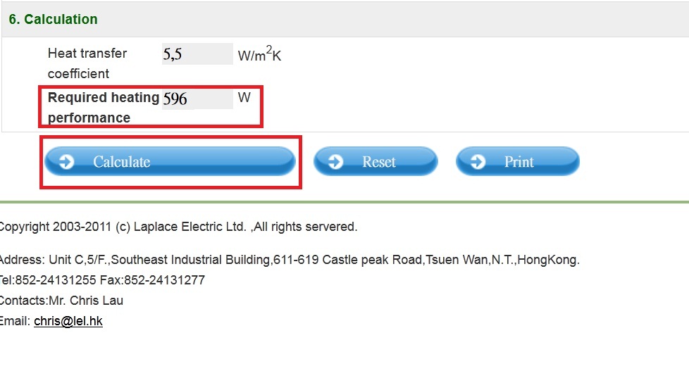 6. 按"现在所需的加热量!" 计算出结果